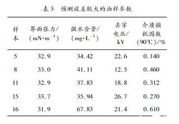 對誤差較大的5組變壓器油樣都發生了劣化,導致預測誤差相對較大。