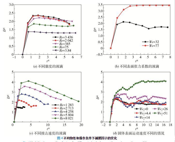 圖4不同物性和操作條件下鋪展因子的變化