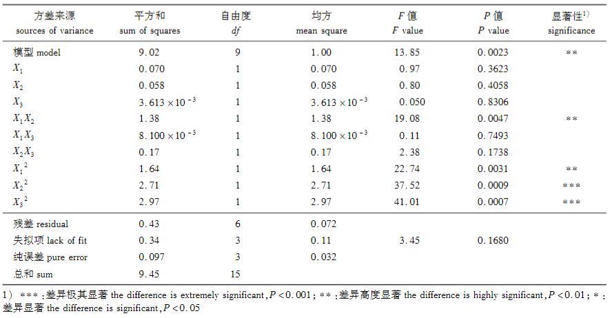 表1.響應面試驗設計及結果