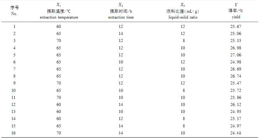 根據P值大小可分析各因素對肥皂莢皂苷得率的影響程度,因此由P值可知:PX3>PX2>PX1,可以得到各因素對皂苷得率的影響程度為X1(溫度)>X2(時間)>X3(液料比),即溫度對皂苷得率影響最大,時間次之,而液料比的影響最小。