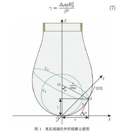 式中,?p? 為參考點 O 處的液滴分界面處的內外壓力差;?p_d 為液滴表面 d 點處的液滴分界面處的內外壓力差;?ρ 為氣液兩相的密度差;g 為當?shù)刂亓铀俣龋≈禐?9.7967 m·s?2;k?、k_L 和 k_d 分別為參考點 O 處的曲率、d 點在 Z ? X 坐標平面的曲率以及 d 點在 Z ? X 正交平面的曲率,其值分別為 k? = 1/R?,k_L = dφ/ds 和 k_d = sinφ/x。