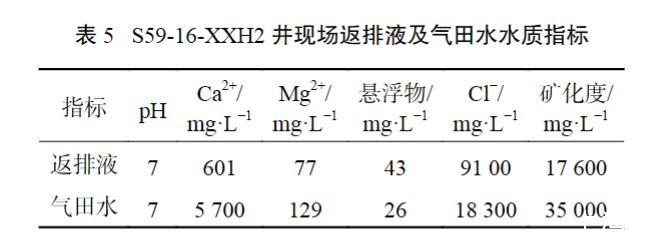 表5 S59-16-XXH2井現場返排液及氣田水水質指標