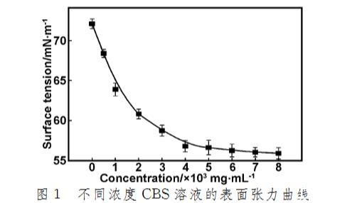 2.3.1 CBS濃度對(duì)CBS溶液表面張力的影響