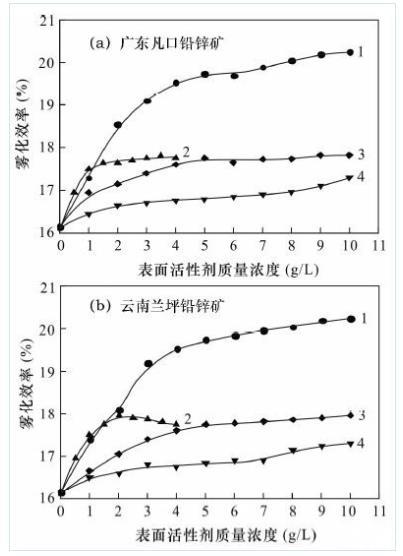 2.4表面活性劑不同濃度對(duì)鉛鋅礦實(shí)樣懸浮液霧化效率的影響