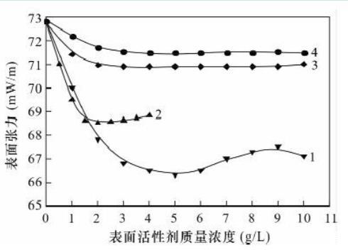 2.2表面活性劑不同濃度對(duì)水溶液表面張力的影響