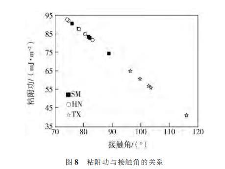 圖8粘附功與接觸角的關系