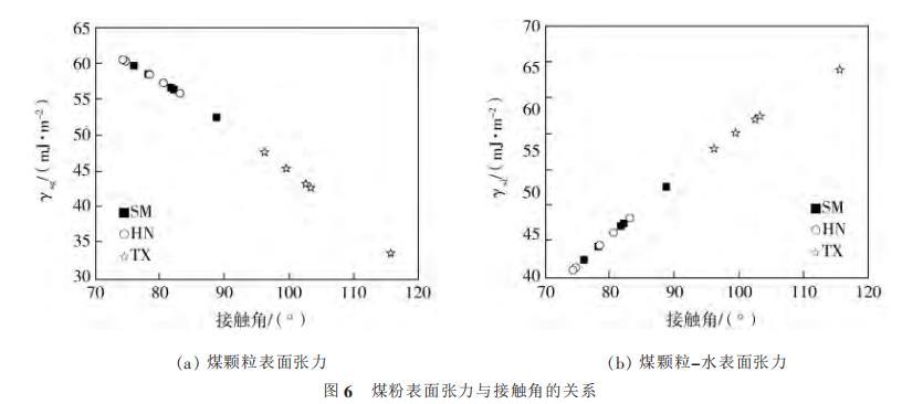 圖6煤粉表面張力與接觸角的關系