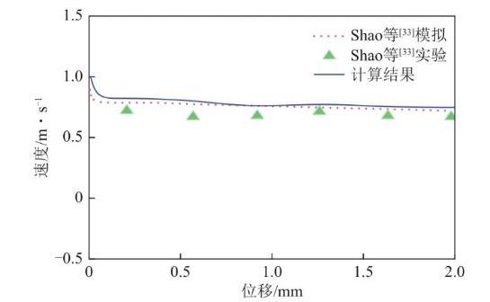 圖4   顆粒速度-位移曲線的實驗與模擬結果