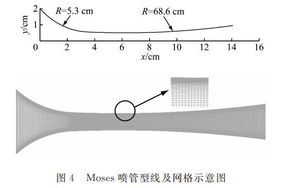 圖 4 Moses 噴管型線及網格