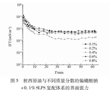 圖5 0.1% SLPS/不同濃度偏硼酸鈉復配體系與樁西原油的界面張力