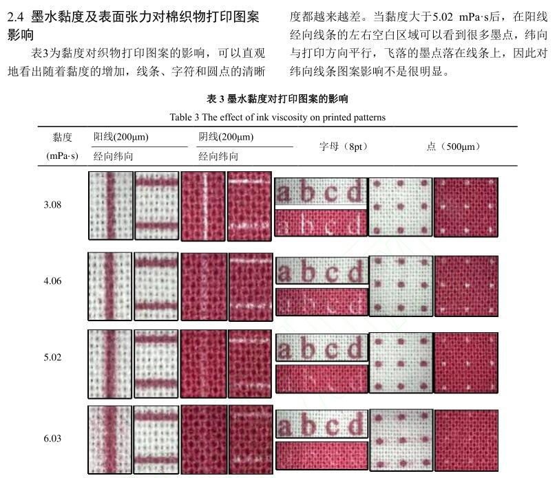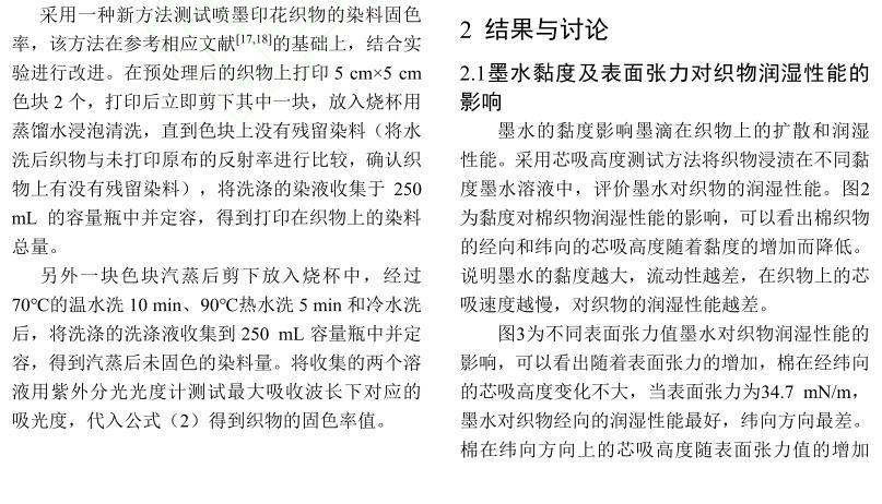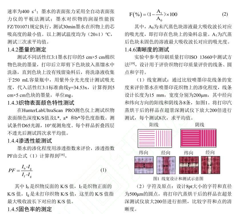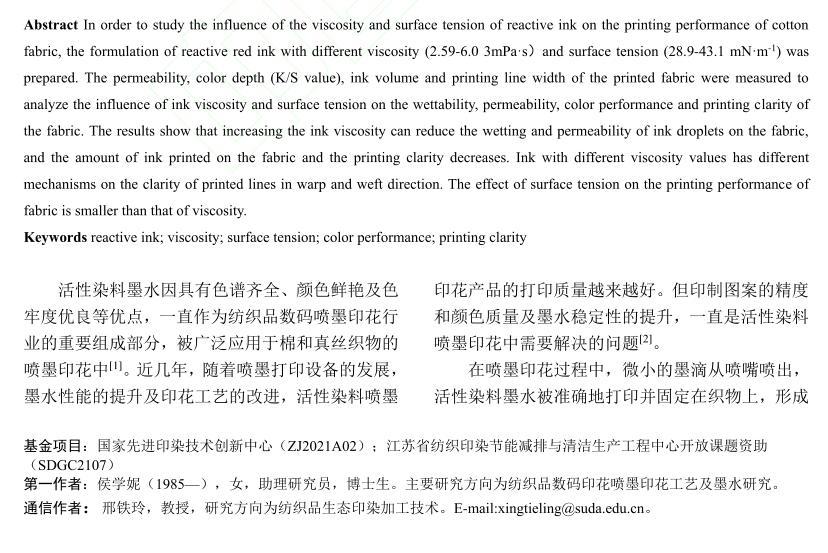 活性染料墨水黏度及表面張力對(duì)棉織物印花性能的影響