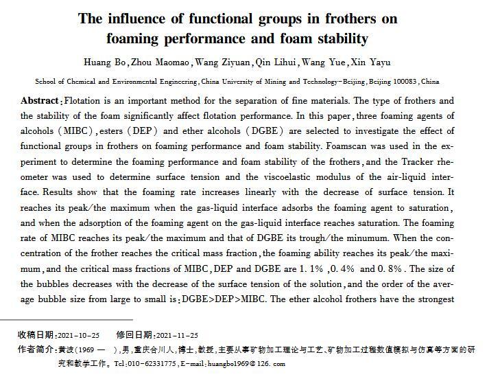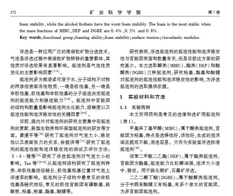 官能團(tuán)對起泡性能和泡沫穩(wěn)定性影響的研究